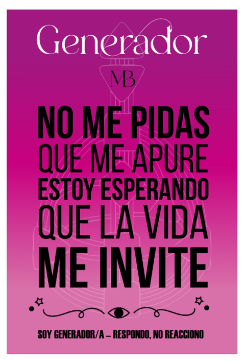 Este póster / afiche está diseñado con frases según los Tipos Áuricos del Diseño Humano, para que puedas tener presente tu forma natural de estar y moverte en el mundo.